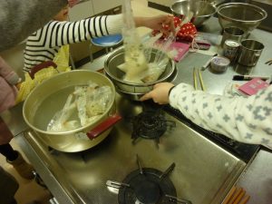 町田市民フォーラムにて、小学生の親子参加の非常食クッキング講座を行いました。