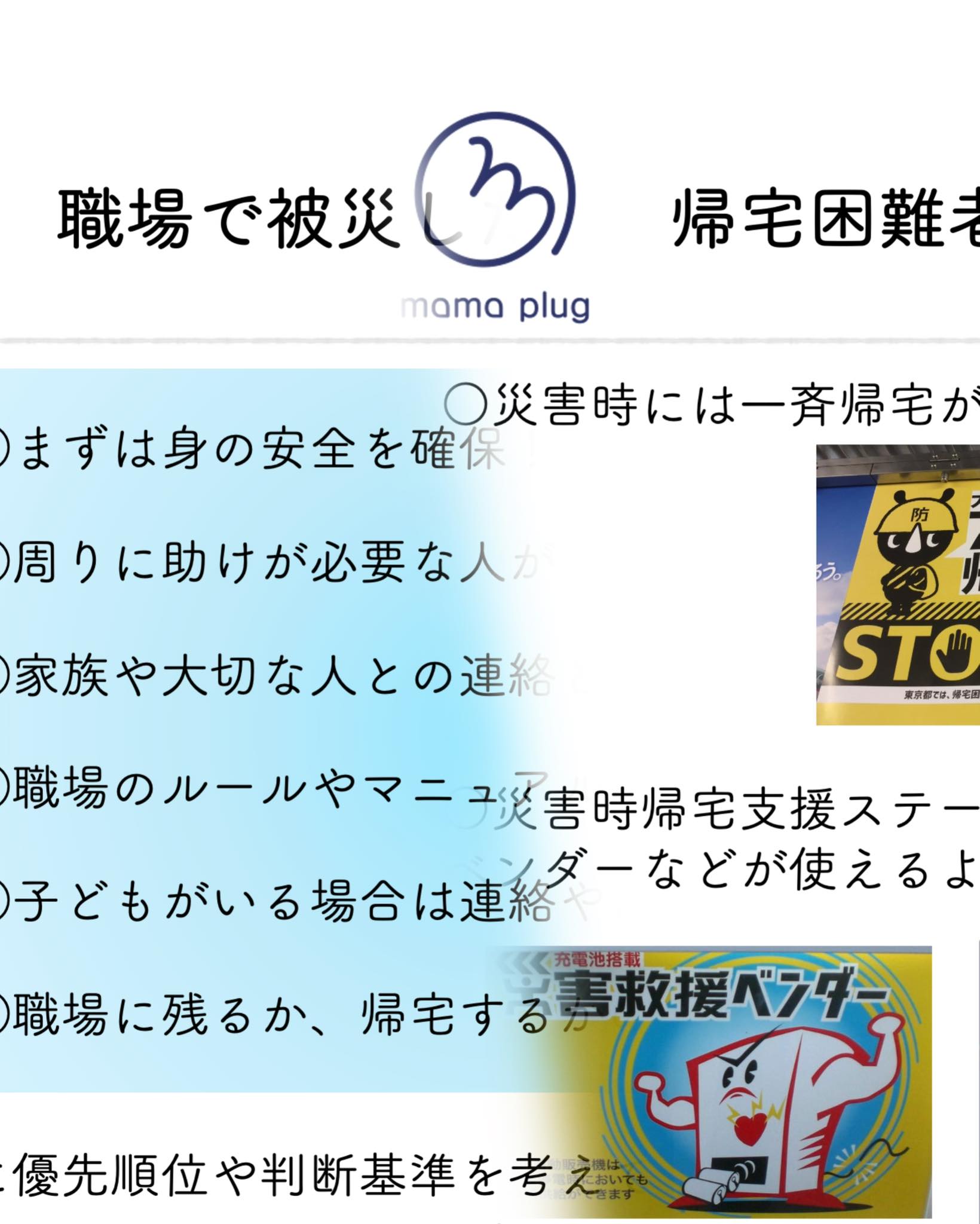 普段のアクティブ防災講座に加え、職場で被災した時の対応や帰宅困難者対策の話を含めた120分ノンストップの講座でした。